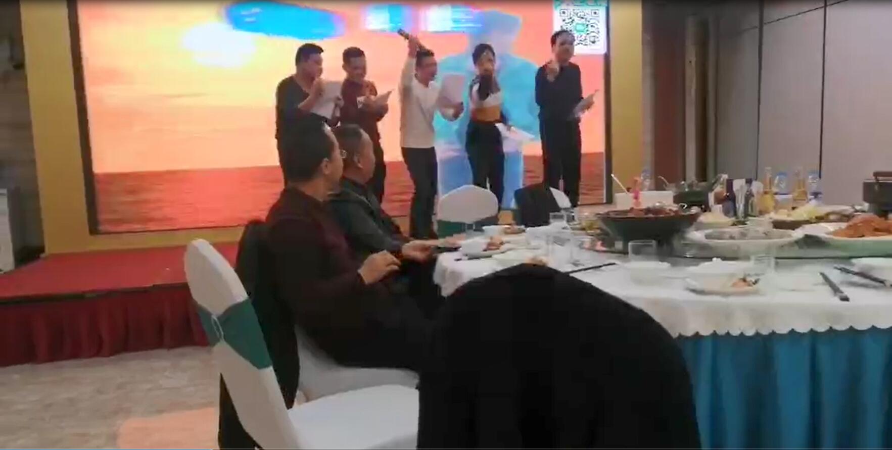 尾牙宴上,公司職員為大家?guī)砹宋璧?、對唱、小品、等精彩表演,引來陣陣喝彩,中場穿插的抽獎活動更是引得現(xiàn)場高潮迭起。